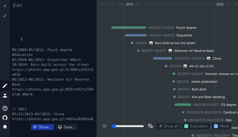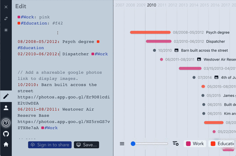 Sections behave similarly though extend to the width of the entire timeline and are activated by the section and endSection keywords: